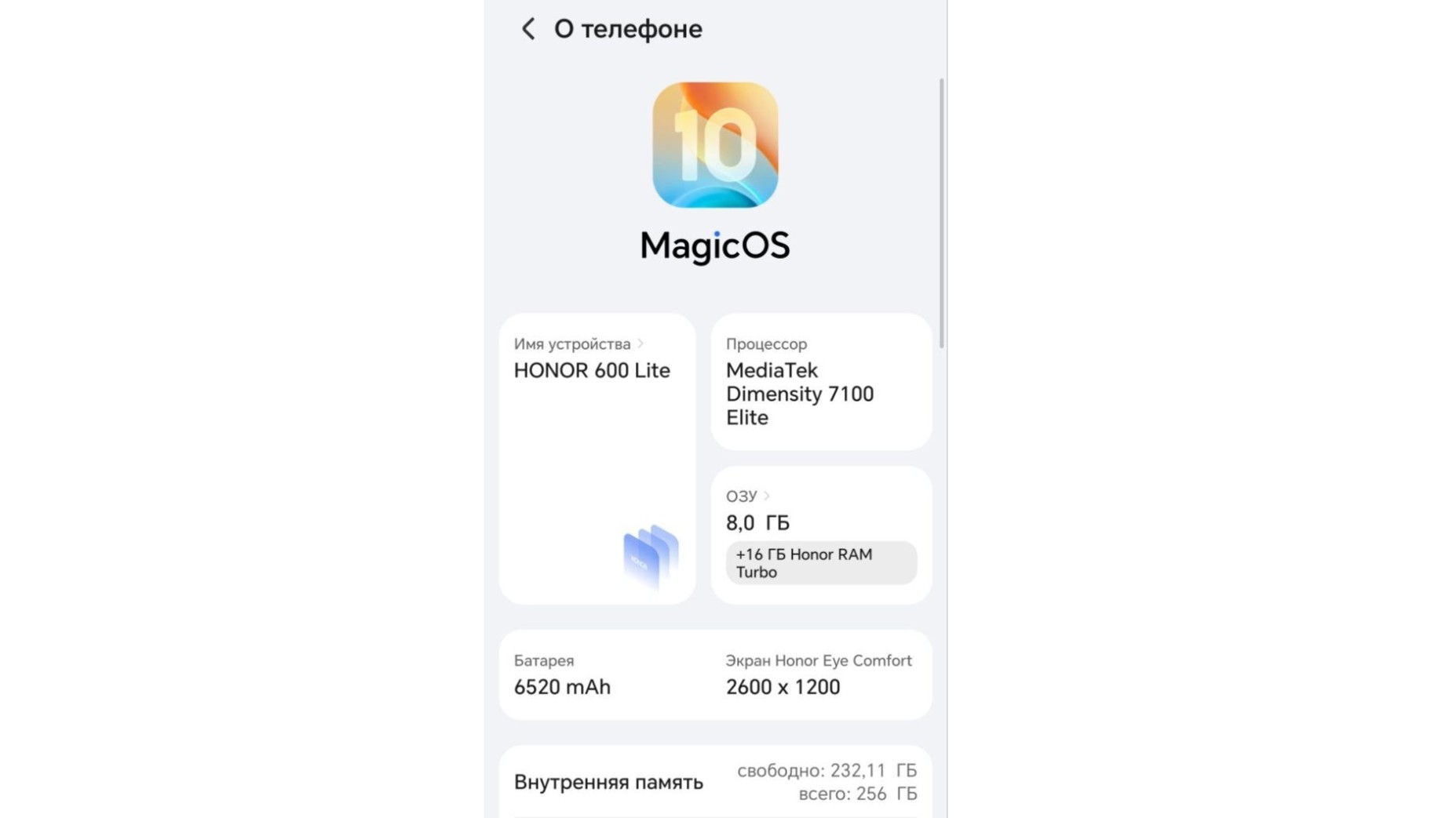 Honor 600 Lite — это типичный представитель бюджетного сегмента с акцентом на дизайн, легкость, экран и автономность. Смартфон предлагает крупный аккумулятор, яркий дисплей и расширенный комплект поставки, но при этом экономит на камере и производительности.